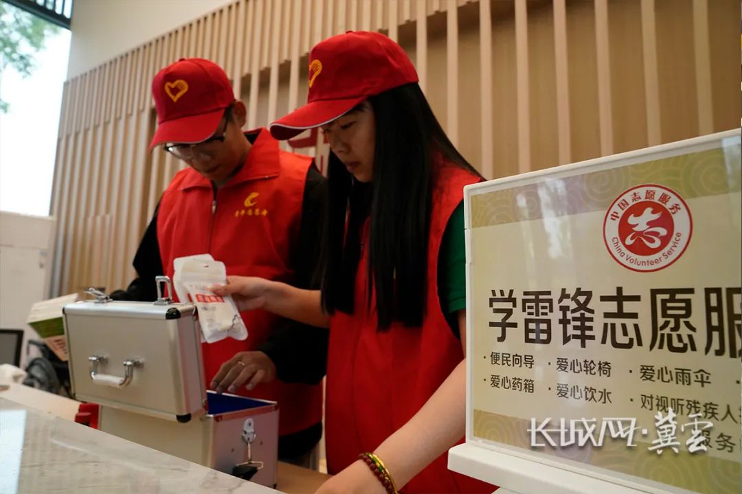 青年團員志愿者在整理急救箱。長城網(wǎng)·冀云客戶端記者 崔上 攝