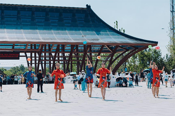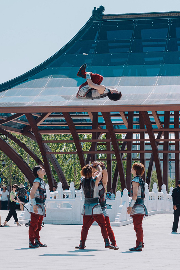 “人民的非遺,人民共享”。抖空竹、舞中幡、雜技等特色非遺表演在園博園1號(hào)門廣場(chǎng)精彩呈現(xiàn),吸引游客駐足觀看,連連拍手叫好。
