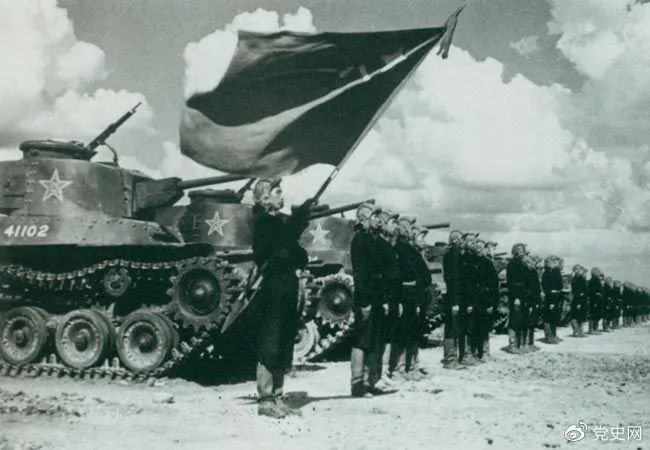 1950年9月,中國(guó)人民解放軍裝甲兵領(lǐng)導(dǎo)機(jī)構(gòu)在北京成立。圖為坦克部隊(duì)陣容。