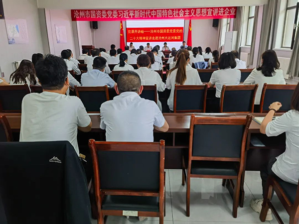 為深入學(xué)習(xí)宣傳貫徹黨的二十大精神,按照市國資委黨委總體部署,組織黨的二十大精神宣講團(tuán)走進(jìn)大運(yùn)河集團(tuán)。大運(yùn)河集團(tuán)黨委委員、紀(jì)委書記、監(jiān)察專員白玉君,市國資委企業(yè)黨建工作科科長劉倩,企業(yè)黨建工作科副科長趙宇出席會(huì)議。中共滄州市委黨校政治和法律教研室副主任鄭忠國主講。