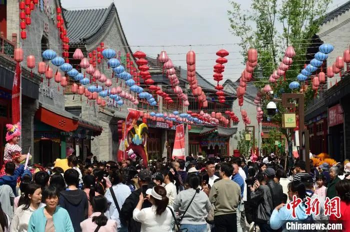 5月1日,滄州坊商街開街吸引大量游人。傅新春 攝