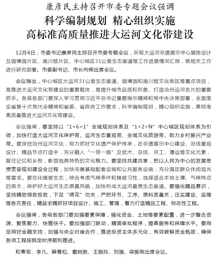 康彥民:科學編制規(guī)劃 精心組織實施 高標準高質(zhì)量推進大運河文化帶建設
