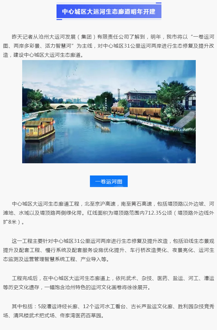 中心城區(qū)大運(yùn)河生態(tài)廊道明年開建