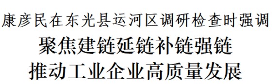 4月17日,市委書記康彥民到東光縣、運(yùn)河區(qū)調(diào)研檢查。他強(qiáng)調(diào),要深入貫徹習(xí)近平新時(shí)代中國特色社會(huì)主義思想,完整準(zhǔn)確全面貫徹新發(fā)展理念,堅(jiān)持工業(yè)強(qiáng)市、產(chǎn)業(yè)興市,真抓實(shí)干、挖掘潛力,創(chuàng)新驅(qū)動(dòng)、激發(fā)活力,大力建鏈延鏈補(bǔ)鏈強(qiáng)鏈,推動(dòng)工業(yè)企業(yè)做大做強(qiáng),為滄州高質(zhì)量發(fā)展提供重要支撐和堅(jiān)實(shí)保障。
