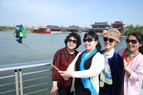 在滄趣園里,一位邊游覽邊拍照的女士,每到一處標(biāo)志性建筑前,便停下腳步用手機(jī)拍攝,然后通過(guò)微信群發(fā)給親朋好友。她在短視頻平臺(tái)上看到9日?qǐng)@博園對(duì)外開(kāi)放的消息,便和愛(ài)人一起在網(wǎng)上預(yù)約后開(kāi)車過(guò)來(lái)?!霸缇拖雭?lái)看看咱們滄州園博園到底是什么樣子,今天一看,很震撼,景色真好!”在映月湖北側(cè)的“登山問(wèn)月”入口處,65歲的尹金柱和老伴兒,正商量著接下來(lái)的行程?!奥?tīng)說(shuō)這里是園博園的制高點(diǎn),站在上面的問(wèn)月亭里能一覽園博園全貌,我們打算一會(huì)兒去瞅瞅!”他說(shuō),他們就住在附近,一大早騎電動(dòng)車過(guò)來(lái)的,已經(jīng)逛了四五個(gè)展園了?!懊總€(gè)園都各具地方特色,真是太好了。
