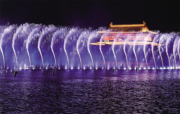 走進(jìn)吳橋雜技大世界景區(qū),五湖四海的游客云集于此。蹬大缸、頂方桌、上刀山、吹嗩吶、獨(dú)輪車、古彩戲法、魔術(shù)雜耍……精彩的表演輪番上陣,引得游客掌聲四起。省級(jí)非物質(zhì)文化遺產(chǎn)雜技嗩吶代表性傳承人“吹破天”何樹森,是吳橋雜技大世界“新江湖八大怪”之一。在“吹破天”劇場(chǎng),何樹森頭頂暖水壺吹嗩吶,不但能用嘴吹還能用鼻子吹,甚至還能吹茶壺,將雜技與嗩吶完美結(jié)合?!按筮\(yùn)河在吳橋縣穿境而過,賦予了‘雜技之鄉(xiāng)’別樣韻味。這些年,我通過演出不斷展現(xiàn)非遺魅力,同時(shí)手把手教學(xué)授藝,希望把這門技藝永久傳承下去。”何樹森說。這兩年,我市還精心創(chuàng)作文學(xué)藝術(shù)精品,組織“大運(yùn)·長歌”長幅畫卷和“大運(yùn)河·故鄉(xiāng)情”主題歌曲創(chuàng)作,編印中國大運(yùn)河(滄州段)非遺攝影集萃,舉辦2022年“文化和自然遺產(chǎn)日”暨滄州市非遺購物節(jié),讓大運(yùn)河更加流光溢彩,以文化引領(lǐng)高質(zhì)量發(fā)展。突出科學(xué)利用,創(chuàng)新融合發(fā)展思路走進(jìn)園博園,伴隨悠揚(yáng)的音樂聲響起,映月湖中一簇簇水柱噴涌而出,瞬間形成數(shù)十米高的噴泉水簾,時(shí)而剛勁有力,時(shí)而婀娜多姿。在噴泉水簾的舞動(dòng)與環(huán)繞下,包含滄州鐵獅子、武術(shù)等文化符號(hào)的水幕電影正式上演。一時(shí)間,水柱、燈光、音樂、激光……多種元素交相輝映,為市民帶來一場(chǎng)視聽盛宴。