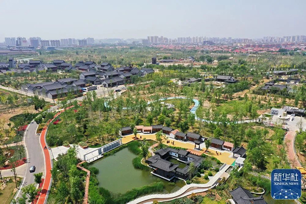 ↑5月12日拍攝的滄州園博園(無(wú)人機(jī)照片)。