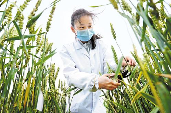 5月25日,中科院南皮生態(tài)農(nóng)業(yè)試驗站工作人員在旱堿麥試驗田采集麥穗。河北日報記者張昊攝
