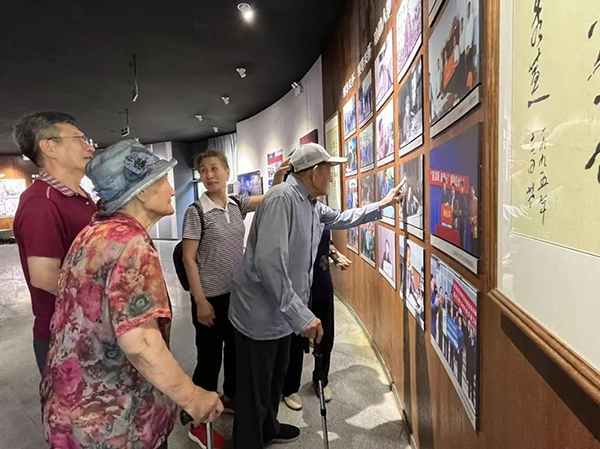 “這個(gè)地方以前是我們的辦公室,我太熟悉了……”張培軒看著,抑制不住自己激動(dòng)的心情,不住地跟一旁的孫女說(shuō)著。曹秀云看著展覽館里的老照片,眼眶也有些濕潤(rùn)。